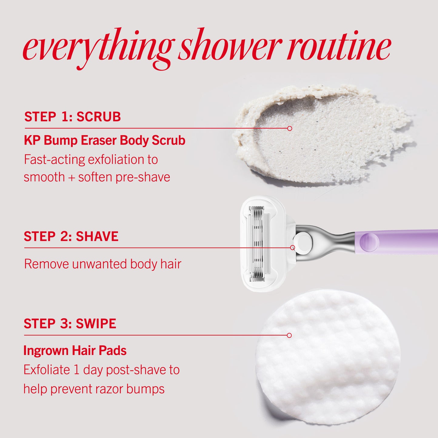 Go-to, single-use pads exfoliate skin to slough away dead skin cells that trap hairs, helping to prevent razor bumps + painful ingrown hairs from forming.