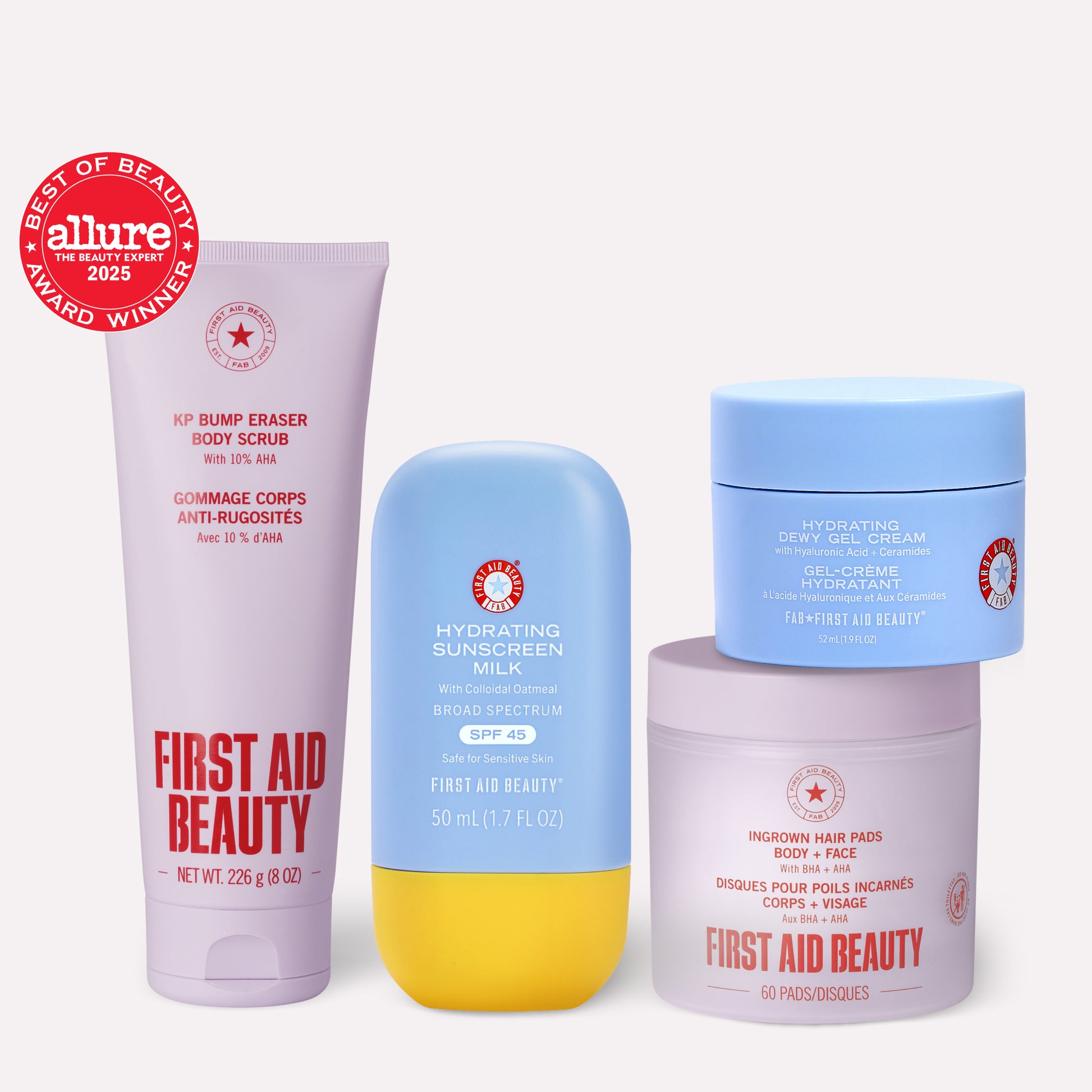 - Glycolic + Lactic Acids: Alpha hydroxy acids (AHAs) that exfoliate skin and help it appear brighter and improve texture.